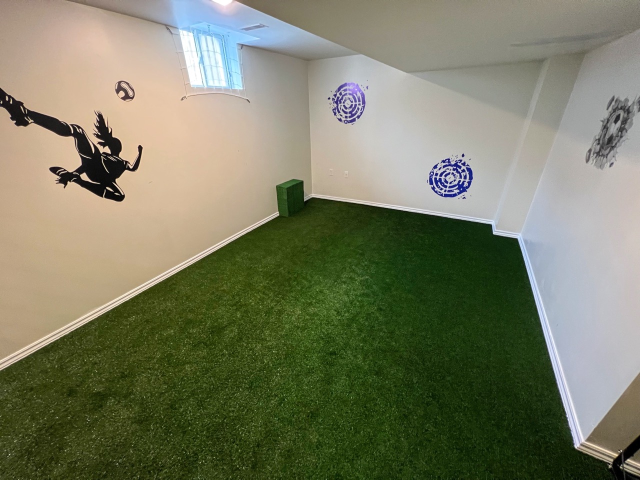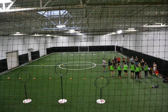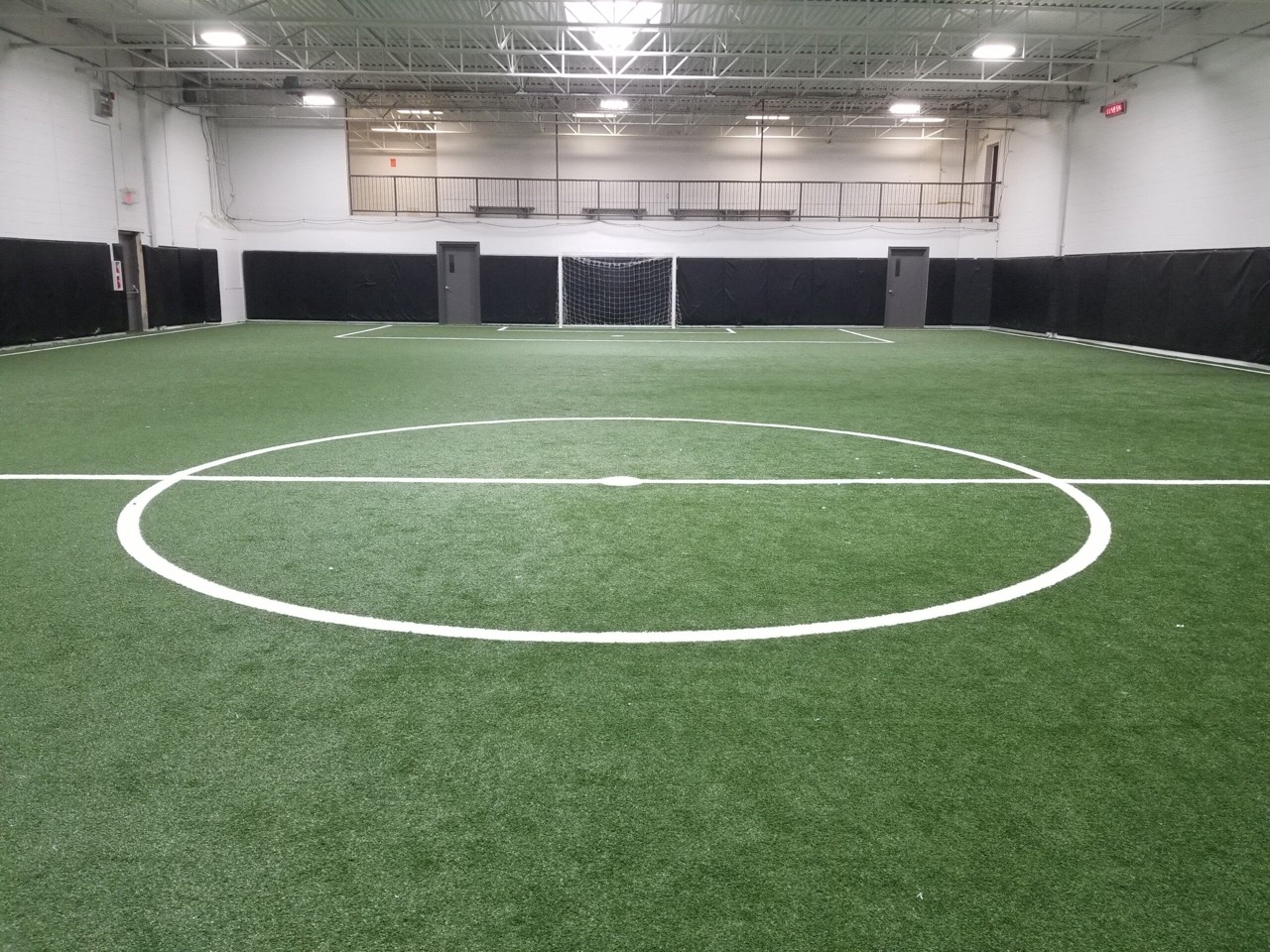 Cutting-edge indoor soccer field with water-jetted white lines on vibrant artificial turf. The precise markings and durable surface create an optimal setting for year-round soccer action.